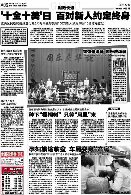 本报讯(记者田玥)因寓意“十全十美”,2010年10月10日被不少人看做喜结良缘的“吉日”,城关区民政局为帮助新人达成愿望,特地开辟绿色通道——9月26日至9月30日受理10月10日结婚登记预约服务。截至9月30日预约结束,正好有100对新人预约登记。