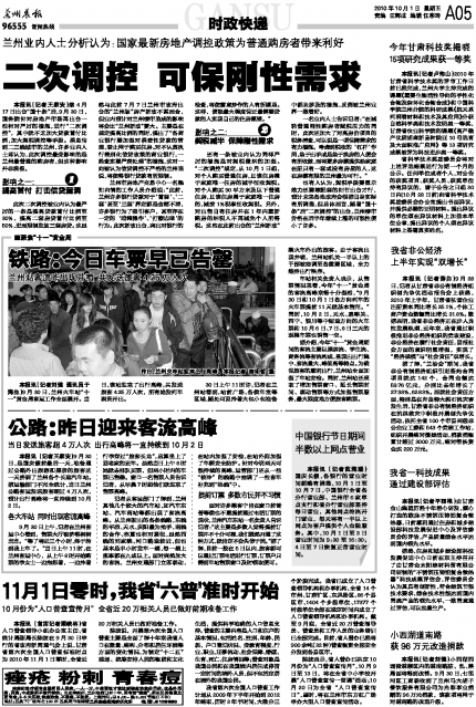 客户热线:0931-96555 传真:0931-8159628(新闻) 8123740(广告) 本报社址:兰州市白银路123号 邮编730030 Email:lzcbreader@163.com