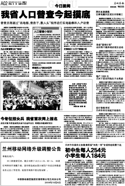 客户热线:0931-96555 传真:0931-8159628(新闻) 8123740(广告) 本报社址:兰州市白银路123号 邮编730030 Email:lzcbreader@163.com
