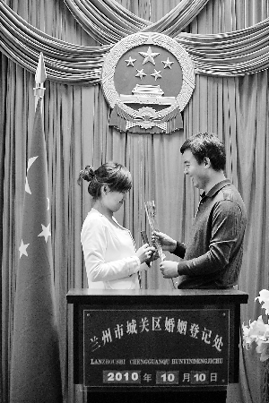 “十全十美婚”来了!继2008年8月8日和2009年9月9日之后,难得的“三连十”日——2010年10月10日也在兰州掀起结婚潮。当日,城关区民政局婚姻登记处为242对新人办理了婚姻登记,约为今年其他时段的7倍,创今年以来单日办理婚姻登记最高峰。