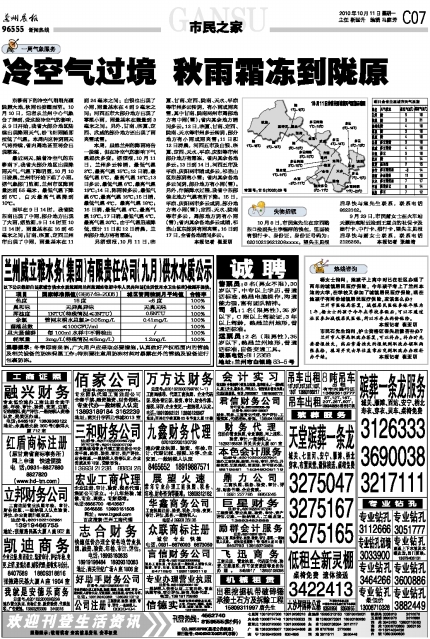 客户热线:0931-96555 传真:0931-8159628(新闻) 8123740(广告) 本报社址:兰州市白银路123号 邮编730030 Email:lzcbreader@163.com