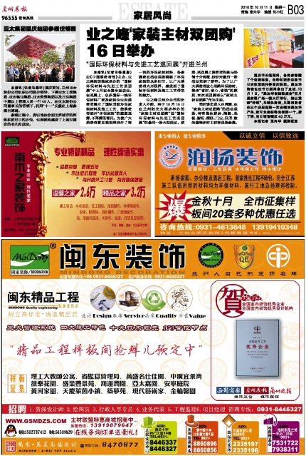 客户热线:0931-96555 传真:0931-8159628(新闻) 8123740(广告) 本报社址:兰州市白银路123号 邮编730030 Email:lzcbreader@163.com