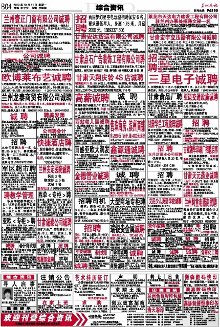客户热线:0931-96555  传真:0931-8159628(新闻)  8123740(广告)  本报社址:兰州市白银路123号  邮编730030  Email:lzcbreader@163.com