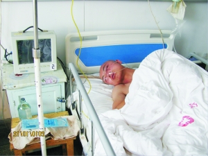 10月12日下午2时许,当记者赶到兰州军区总医院安宁分院住院部骨科9床时看到,一男子躺在病床上,仍处昏迷之中,但不断地翻身。“因为他实在疼得忍不住,又没法说话,只能不间断翻身。”几名正在照顾他的工友说道。