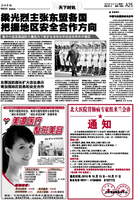 客户热线:0931-96555 传真:0931-8159628(新闻) 8123740(广告) 本报社址:兰州市白银路123号 邮编730030 Email:lzcbreader@163.com