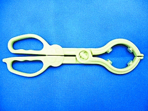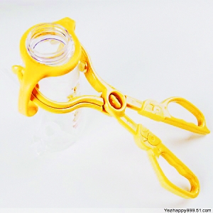 2.使用药水消毒时:用钳子紧紧夹住奶瓶的头部,取出后用手握瓶将水倒出。