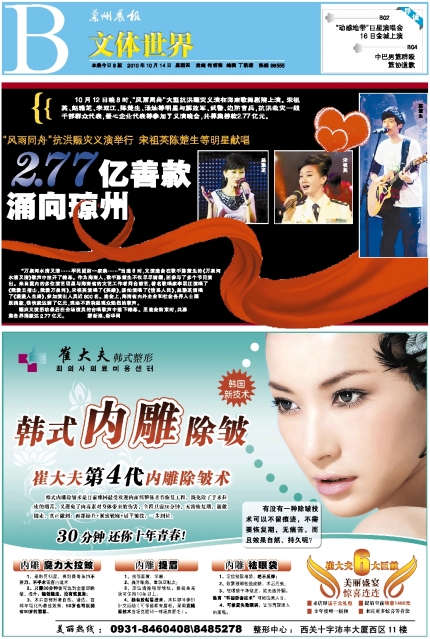 客户热线:0931-96555 传真:0931-8159628(新闻) 8123740(广告) 本报社址:兰州市白银路123号 邮编730030 Email:lzcbreader@163.com