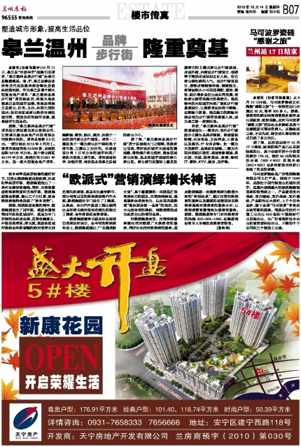 客户热线:0931-96555 传真:0931-8159628(新闻) 8123740(广告) 本报社址:兰州市白银路123号 邮编730030 Email:lzcbreader@163.com