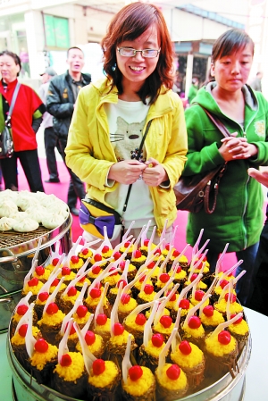 本报讯(记者范海瑞 首席记者梁峡林)10月16日,为期9天的第四届中国·甘肃美食节全国风味小吃展在建兰路步行街拉开帷幕,泰国鳄鱼大串、台湾蚵仔煎、日本秋刀鱼、北京老八件、杭州美容蟹等100多种中外名优风味小吃熏香了整个一条街,吸引了众多市民前来品尝,一饱口福。本届小吃展参展的风味名优小吃达100余种,其中省内小吃40余种,是历届美食节中参展小吃种类最多、规模最为宏大的一次。据不完全统计,当日参会人数数以万计,营业额高达30万元。