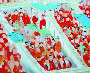 在这幅画中“装饰风”占了主导,但在具体的笔画中还是“写”的味道十足,这两个因素是前代人的共性。