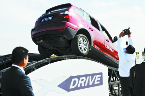 舞台上,BMW X家族独有的XDrive智能四驱系统的神奇和威力,让车手与车演得自如、玩得开心。xDrive根据车辆的四轮抓地情况合理分配驱动力,使X们顺利通过滑动的滚轴面爬上了陡坡,下坡时车辆的尾部和一侧后轮高高翘起,这时车门仍能正常开启,展示了X车型高强度的车身结构和抗扭曲能力。车手们驾驶着X车系,尽情体验着当今最先进汽车科技带来的无穷魅力,在看起来最危险和最坎坷的舞台上,他们与X融为一体。