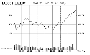 上证指数收报3001.85点,涨46.62点,涨幅1.58%;深证成指收报12970.20点,涨320.93点,涨幅2.54%。另外,中小板指全日劲升3.59%,创业板指更是飙升6.82%。深沪两市全日共成交3449亿元,较前一日天量水平萎缩近三成。