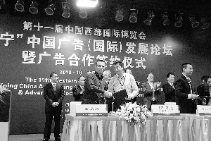 本报讯 (记者李大青)作为第十一届西博会的“开场戏”,10月17日,由四川省政府、国家工商总局主办,中国广告协会、四川省工商局承办的第十一届西博会中国广告(国际)发展论坛暨广告合作签约仪式在成都举行。国内外广告界、传媒界、教育界、世界500强企业及政府部门的300余名代表对话交流,共议广告业发展大计。本报作为甘肃省唯一获邀媒体代表登上了签约台。此次现场签约金额高达22亿多元。