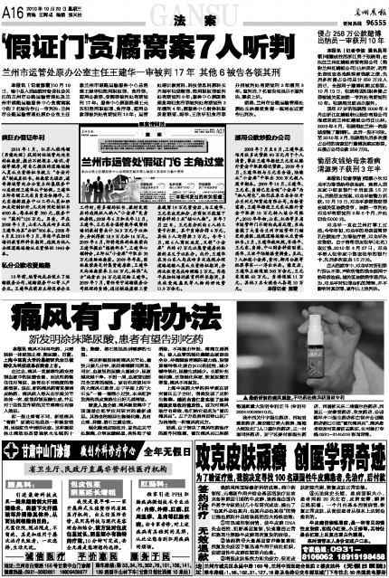 客户热线:0931-96555 传真:0931-8159628(新闻) 8123740(广告) 本报社址:兰州市白银路123号 邮编730030 Email:lzcbreader@163.com