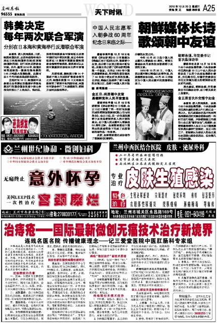 客户热线:0931-96555 传真:0931-8159628(新闻) 8123740(广告) 本报社址:兰州市白银路123号 邮编730030 Email:lzcbreader@163.com