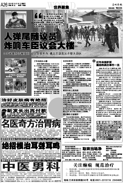 客户热线:0931-96555 传真:0931-8159628(新闻) 8123740(广告) 本报社址:兰州市白银路123号 邮编730030 Email:lzcbreader@163.com