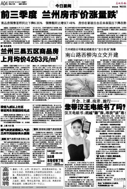 甘肃发行量最大、覆盖面最广、广告效果最好都市报