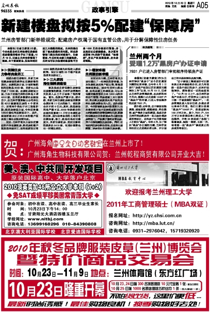 客户热线:0931-96555 传真:0931-8159628(新闻) 8123740(广告) 本报社址:兰州市白银路123号 邮编730030 Email:lzcbreader@163.com