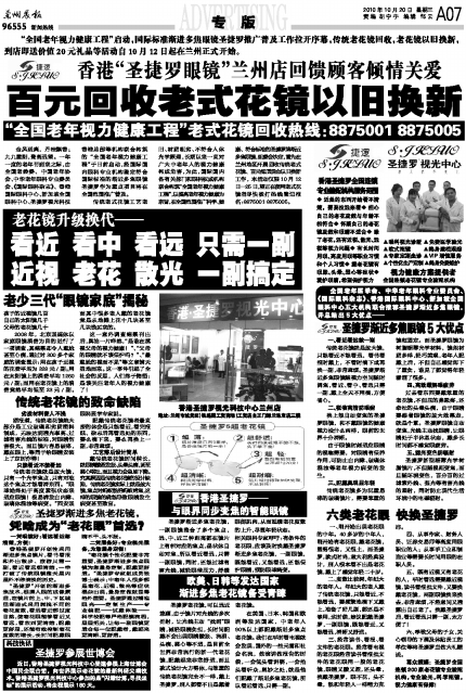 客户热线:0931-96555 传真:0931-8159628(新闻) 8123740(广告) 本报社址:兰州市白银路123号 邮编730030 Email:lzcbreader@163.com