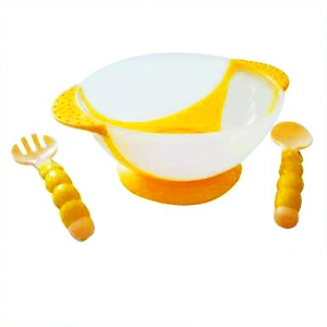 宝宝吸附碗克服了宝宝自己吃饭发生危险的难题,碗底的底盘是吸附式的,可以将碗牢牢吸附在桌面表面,确保了宝宝的安全。