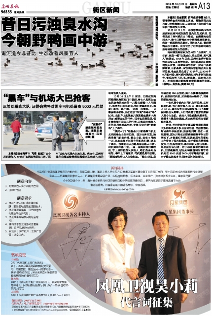客户热线:0931-96555 传真:0931-8159628(新闻) 8123740(广告) 本报社址:兰州市白银路123号 邮编730030 Email:lzcbreader@163.com