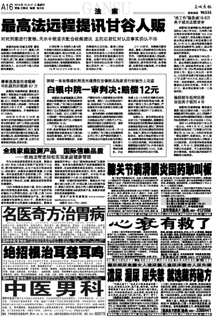 客户热线:0931-96555 传真:0931-8159628(新闻) 8123740(广告) 本报社址:兰州市白银路123号 邮编730030 Email:lzcbreader@163.com