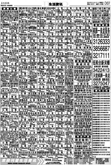 客户热线:0931-96555 传真:0931-8159628(新闻) 8123740(广告) 本报社址:兰州市白银路123号 邮编730030 Email:lzcbreader@163.com
