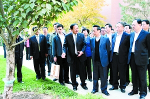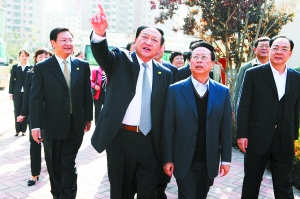 甘肃天鸿金运置业有限公司董事长刘永辉就“鸿运润园”在科技创新、低碳节能等方面所做的工作做了汇报。汇报过程中,陈昌智副委员长对“鸿运润园”建筑节能和甘肃天鸿金运置业有限公司在研发创新方面所取得的成绩表示肯定,并饶有兴致地提出“可不可以去节能的房子里看一看” ?随即,刘永辉董事长陪同陈昌智副委员长及省上领导,信步走进小区,沿着“鸿运润园”中轴景观带,兴致勃勃视察参观。陈昌智副委员长一行边走边看边问,详细了解“鸿运润园”从建筑到施工、从园林景观到物业服务、从植被存活到水系维护等等各种细节,对“鸿运润园”外在的优美环境和优越的内涵品质了解入微,赞赏有加。