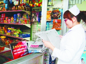 本报讯(记者张馨玉)兰州市第二人民医院住院部门口的小卖部虽然面积不大,但在最醒目的位置摆放着当天的《兰州晨报》。10月21日,正在店里忙碌的马俊华一边忙着给病人推荐牛奶、八宝粥等探视病人的礼品,一边乐呵呵地说:“真没想到一份报纸能帮病患家属那么大的忙。”