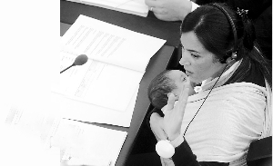 本报讯 据人民网消息,10月20日,欧洲议会在法国的斯特拉斯堡为延长产假的提案举行投票,议员丽希亚·隆苏依带着孩子出席会议。据悉,投票的提案旨在将产假由14周延长至20周,并且在27国集团范围内为新生儿父亲提供两周假期与他们的孩子相处。