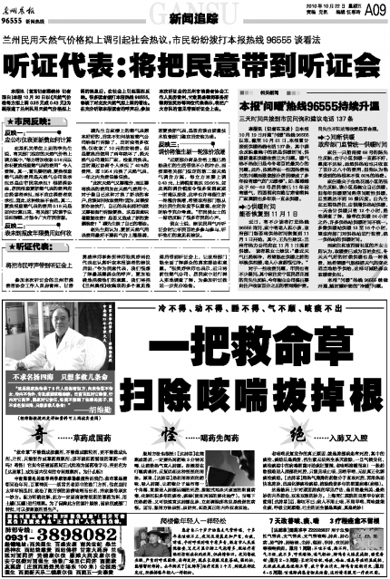 客户热线:0931-96555 传真:0931-8159628(新闻) 8123740(广告) 本报社址:兰州市白银路123号 邮编730030 Email:lzcbreader@163.com