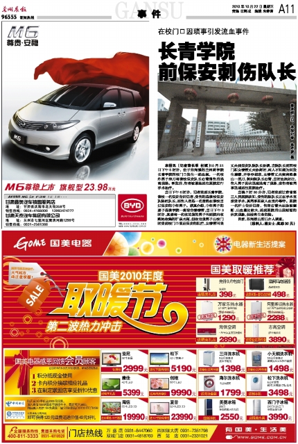 客户热线:0931-96555 传真:0931-8159628(新闻) 8123740(广告) 本报社址:兰州市白银路123号 邮编730030 Email:lzcbreader@163.com