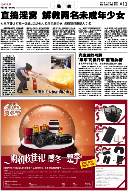 客户热线:0931-96555 传真:0931-8159628(新闻) 8123740(广告) 本报社址:兰州市白银路123号 邮编730030 Email:lzcbreader@163.com