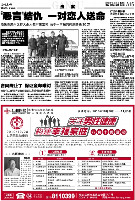 客户热线:0931-96555 传真:0931-8159628(新闻) 8123740(广告) 本报社址:兰州市白银路123号 邮编730030 Email:lzcbreader@163.com