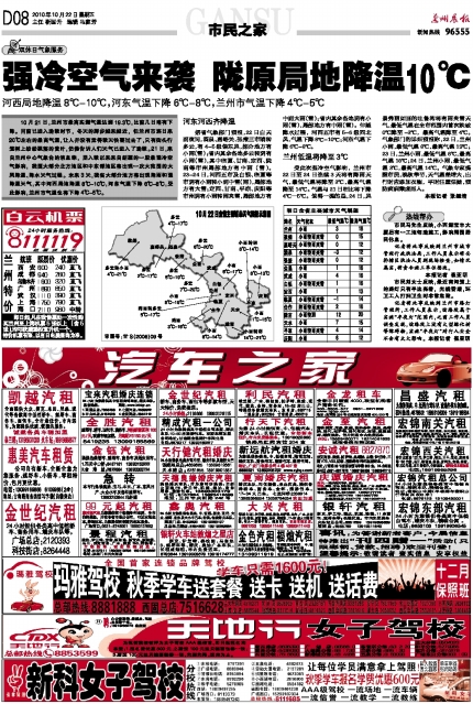 客户热线:0931-96555 传真:0931-8159628(新闻) 8123740(广告) 本报社址:兰州市白银路123号 邮编730030 Email:lzcbreader@163.com