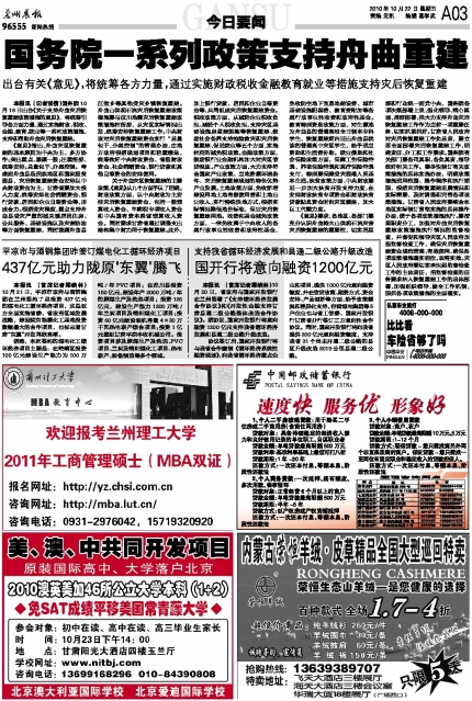 客户热线:0931-96555 传真:0931-8159628(新闻) 8123740(广告) 本报社址:兰州市白银路123号 邮编730030 Email:lzcbreader@163.com