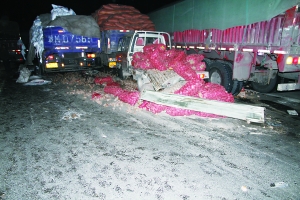 据现场司机们讲,事发路段是下坡拐弯路段,在深夜司机视线不好或疲劳驾驶,对前面的事故毫无察觉,就陆续发生追尾事故。