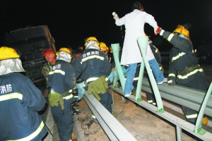 在近1公里长的救援现场,救援人员展开了艰难的救援行动。他们挨车查看每一个伤员,看有没有人员被困其中,受伤的人员被陆续送往医院救治。