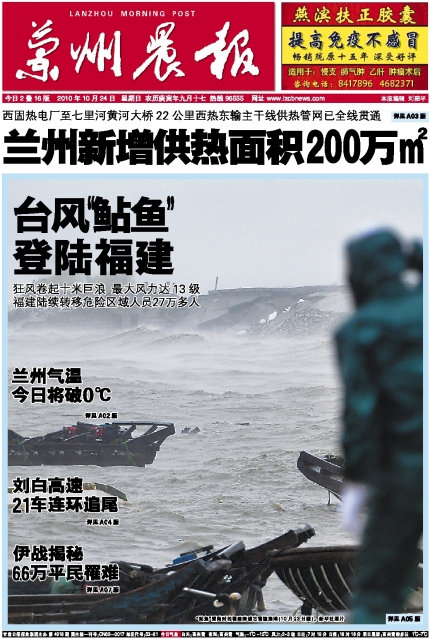 兰州晨报社版权所有 未经书面授权不得转载 国内统一刊号:CN62-0017 邮发代号:53-6