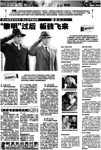 日前,火热播出的谍战剧《黎明之前》陆续在各大卫视收官。早在《黎明之前》播出伊始,其宣传方便一再强调该剧是赶超《潜伏》的又一力作,不想“盛名”之下观众“被忽悠”的呼声越来越高。当《黎明之前》苍凉落幕后,很多观众大失所望地感叹:“唉,比《潜伏》差远了!”综观全剧,观众的失望和无奈不无根据,而与短小精悍的《潜伏》相比,《黎明之前》在剧情、人物设置以及角色塑造等方面都存在软肋。