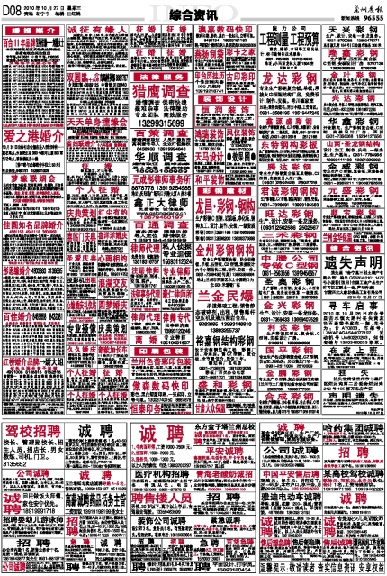 客户热线:0931-96555 传真:0931-8159628(新闻) 8123740(广告) 本报社址:兰州市白银路123号 邮编730030 Email:lzcbreader@163.com