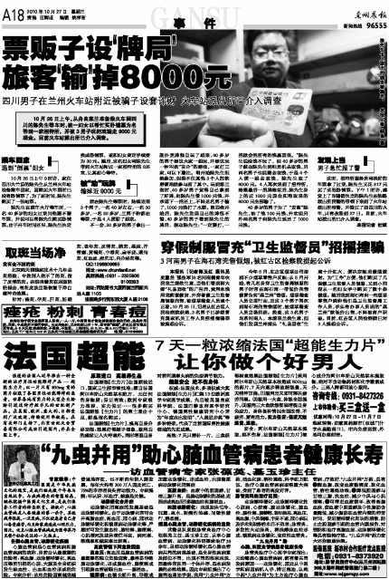 客户热线:0931-96555 传真:0931-8159628(新闻) 8123740(广告) 本报社址:兰州市白银路123号 邮编730030 Email:lzcbreader@163.com