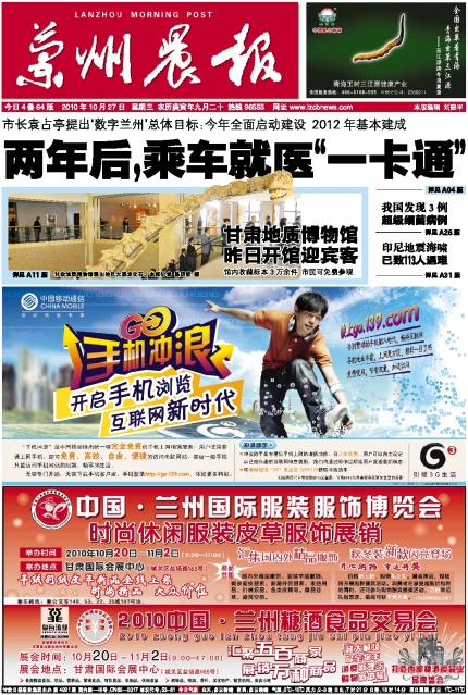 客户热线:0931-96555 传真:0931-8159628(新闻) 8123740(广告) 本报社址:兰州市白银路123号 邮编730030 Email:lzcbreader@163.com