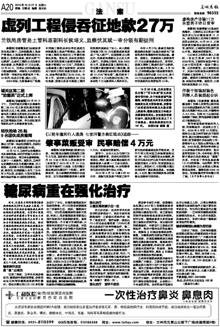 客户热线:0931-96555 传真:0931-8159628(新闻) 8123740(广告) 本报社址:兰州市白银路123号 邮编730030 Email:lzcbreader@163.com