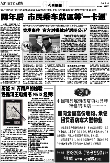 客户热线:0931-96555 传真:0931-8159628(新闻) 8123740(广告) 本报社址:兰州市白银路123号 邮编730030 Email:lzcbreader@163.com