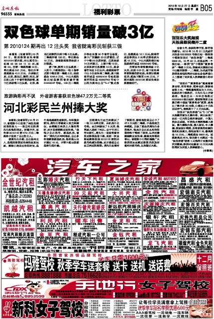 客户热线:0931-96555 传真:0931-8159628(新闻) 8123740(广告) 本报社址:兰州市白银路123号 邮编730030 Email:lzcbreader@163.com