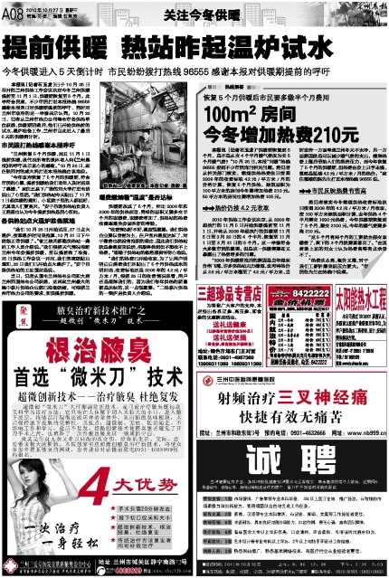 客户热线:0931-96555 传真:0931-8159628(新闻) 8123740(广告) 本报社址:兰州市白银路123号 邮编730030 Email:lzcbreader@163.com