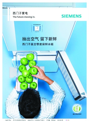本次西门子推出的真空零度冰箱,在零度冰箱的概念上加入了真空保鲜的概念,用真空环境进一步抑制食物中细菌的繁殖,实现了“零度”加“真空”的双重保鲜,再次大幅延长了食品的保鲜时间。实验表明,三文鱼放在真空零度冰箱中十四天后,其中的细菌含量仅为放在普通冰箱中的三文鱼的一百四十分之一。如此保鲜成绩,再次打破了西门子自己保持的行业纪录。