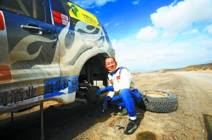 本报若羌讯(特派记者卢伟山)28日,2010中国罗布泊汽车越野赛结束了第二赛段——库尔勒北山便道赛段的争夺,晨报卡曼三台赛车中,顾屹和路彤驾驶的50号和52号赛车都顺利完成了比赛且发挥出色,而张宏毅驾驶的51号赛车由于遭遇机械故障,导致右后轮与车体飞离,遭遇了极大的险情。