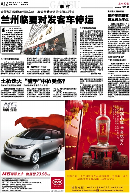 客户热线:0931-96555 传真:0931-8159628(新闻) 8123740(广告) 本报社址:兰州市白银路123号 邮编730030 Email:lzcbreader@163.com